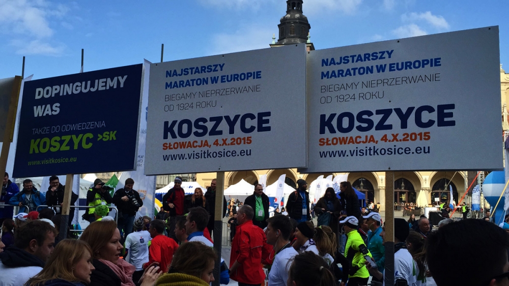 To właśnie ten mało znany, a przecież bardzo interesujący fakt, stał się motywem przewodnim dla nietypowej akcji, jaka odbyła się 19 kwietnia w Krakowie, zapowiadając turystyczną kampanię promocyjną Koszyc w Polsce. Wśród fanów biegania zgromadzonych na starcie i mecie Cracovia Maraton, znaleźli się także kibice reprezentujący Koszyce. Z użyciem haseł na transparentach i planszach dopingowali oni gorąco zawodników krakowskiego maratonu, a równocześnie zapraszali do odwiedzenia pełnego niespodzianek słowackiego miasta. Kibicowanie i doping, jako forma promocji turystycznej, wybrane zostały nieprzypadkowo. Koszycki maraton jest bowiem znany z bardzo przyjaznej atmosfery i gorące dopingu ze strony słowackich kibiców, czego skalę organizatorzy porównują do aktywności fanów np. podczas słynnego Tour de France.
