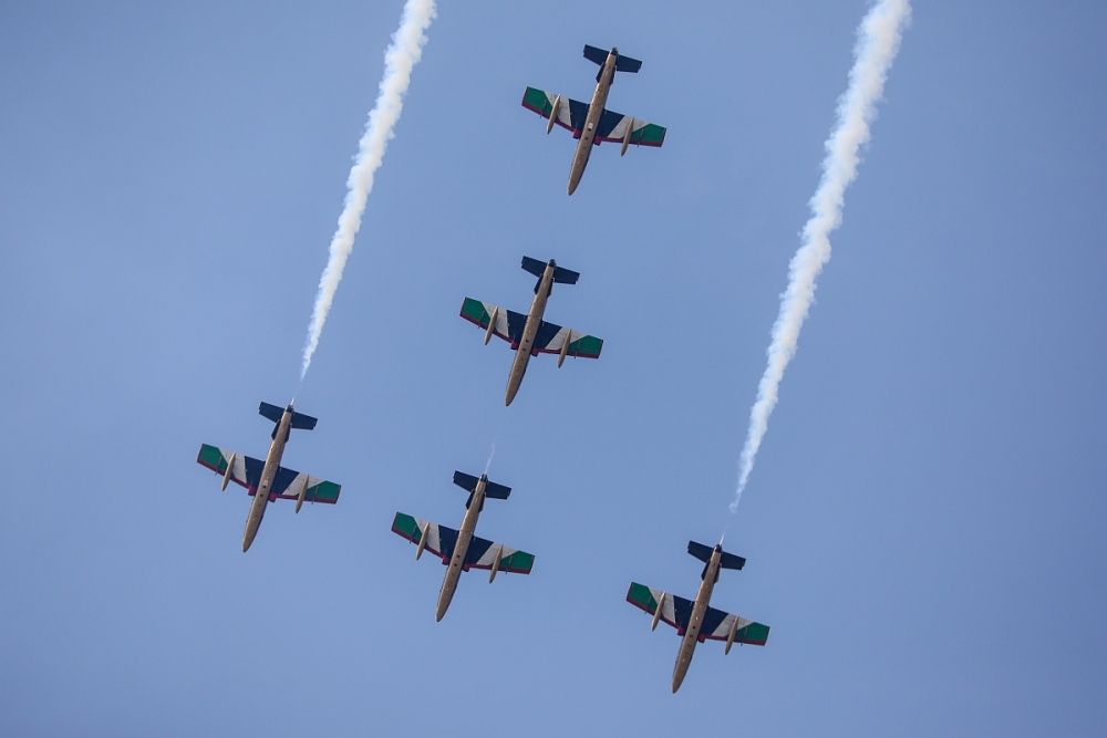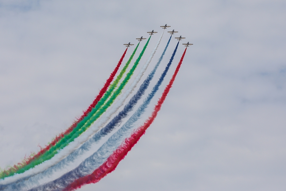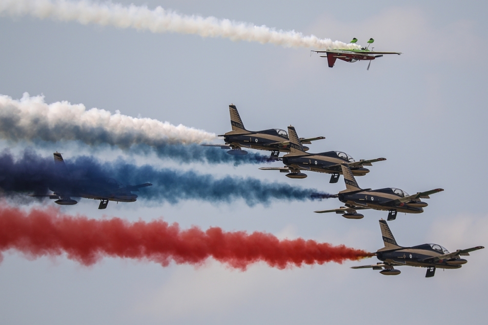 Pokazów w locie przez dwa dni było naprawdę dużo. 16 godzin podniebnych ewolucji przy wyśmienitej pogodzie zbudowało niesamowitą atmosferę, gdzie każdy wyjeżdżał z lotniska uśmiechnięty i zadowolony. Jak co roku pokazały się myśliwce bojowe, które na co dzień strzegą europejskiego nieba: Jas 39-Gripen, Eurofighter Typhoon, F-16, F-18 Hornet. Byli również akrobaci – Frantisek Pytlik i legenda pokazów lotniczych Zoltan Veres, który zaskoczył wszystkich i dołączył do grupy Al Fursan na koniec pokazu i zrobił z nimi wspólny pożegnalny przelot, a następnie rozpoczął swoje show.