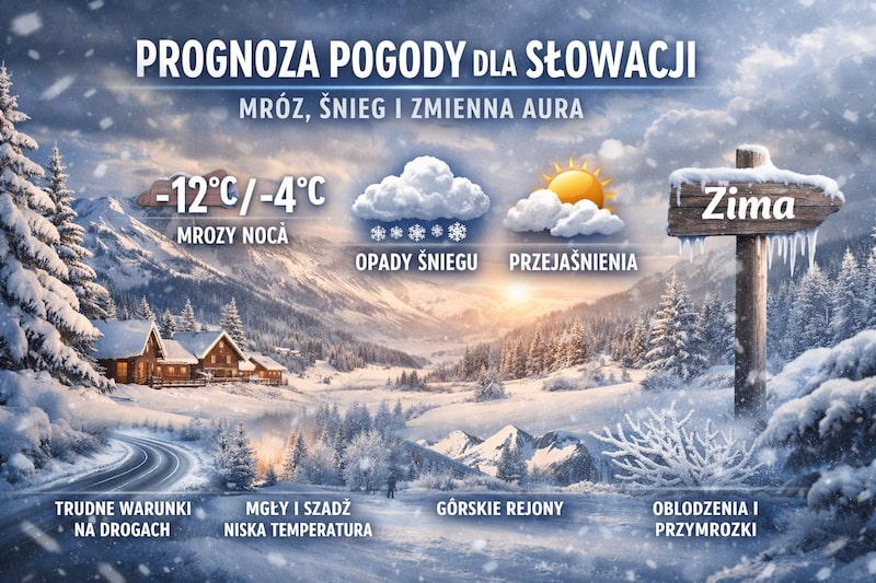 Najbliższy tydzień na Słowacji przyniesie utrzymującą się zimę — z mroźnymi nocami, chłodnymi dniami i okresowymi opadami śniegu. Najtrudniejsze warunki panować będą w rejonach górskich oraz w kotlinach, gdzie możliwe są silniejsze spadki temperatury i oblodzenia. Kierowcy oraz turyści planujący aktywności w górach powinni śledzić bieżące komunikaty meteorologiczne.
