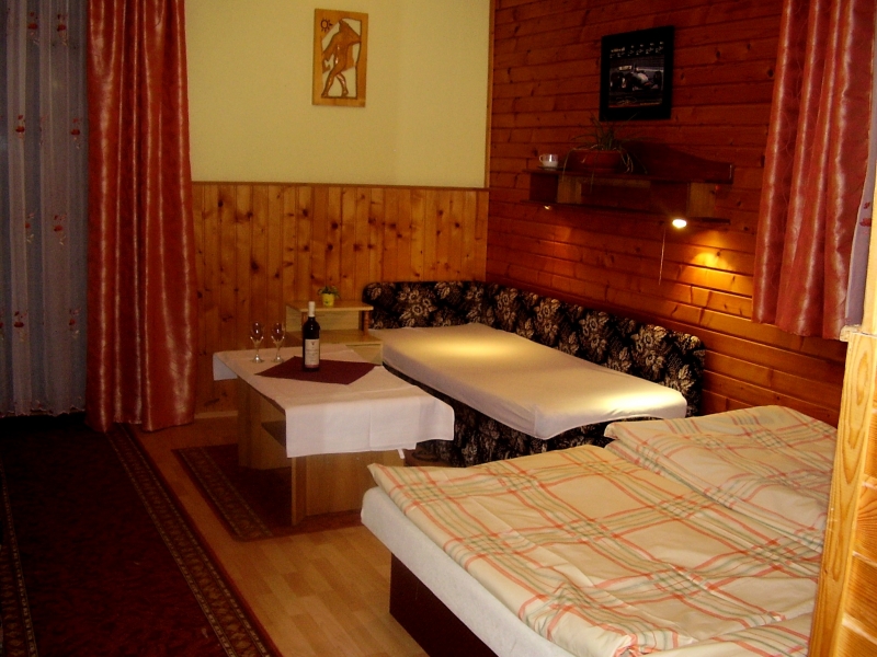 Luksusowo urządzony pensjonat z własną restauracją, góralską izbą z kominkiem, tarasem, sauną, jakuzii na tarasie dostępnym cały rok, balkonami z widokiem na Tatry, łazienkami w pokojach, z parkingiem przed pensjonatem, polską telewizją orz WiFi Internet.