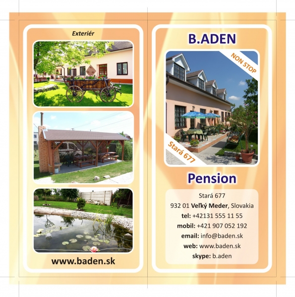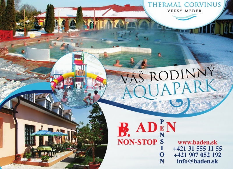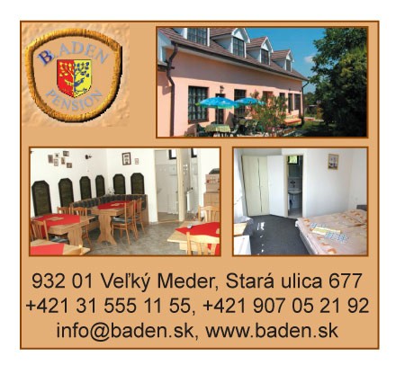 Przy międzynarodowej autostradzie łączącej Bratysławę i Komarno- 6 km od granicy z Węgrami, 20 km od miasta Győr (Ráb), 65 km od Bratysławy - znajduje się pensjonat B.ADEN w Veľkom Mederi ,w centrum miasta, które jest dobrze znane też za granicą z tego że znajdują się w nim baseny termalne Mateja Corvina, gdzie dla gości czekają trzy nowe pomieszczenia kryte oraz pięć odkrytych basenów czynnych przez cały rok.